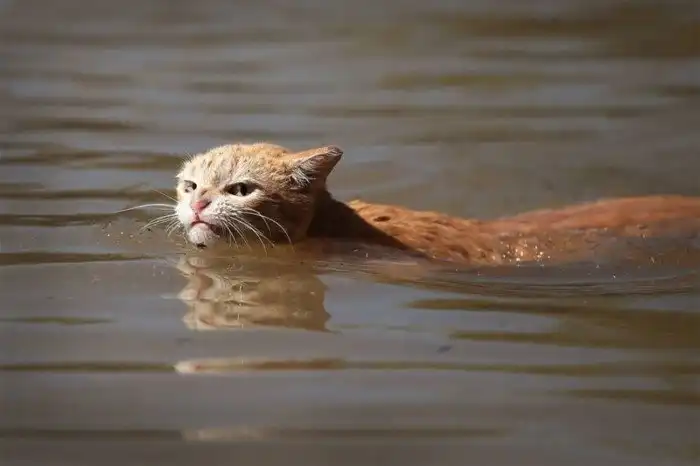1. Кошка пытается найти сухую землю вокруг жилого комплекса в Хьюстоне после того, как налетел Харви 30 августа