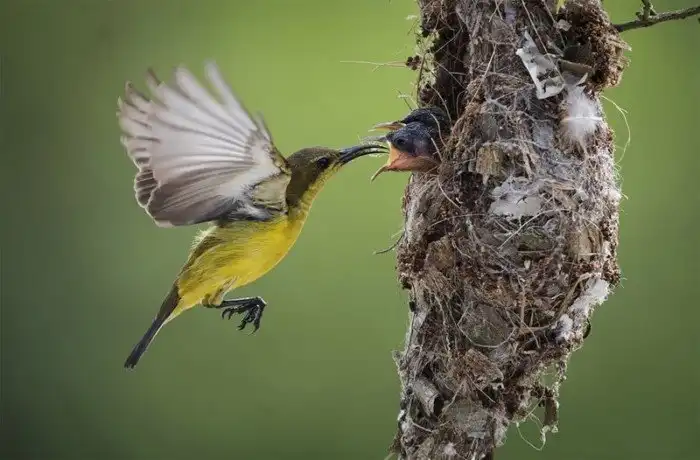 4. Малайзия, 21 января 2017 года. Маленькие птицы питаются в основном нектаром, хотя они также ловят насекомых, особенно когда выкармливают птенцов