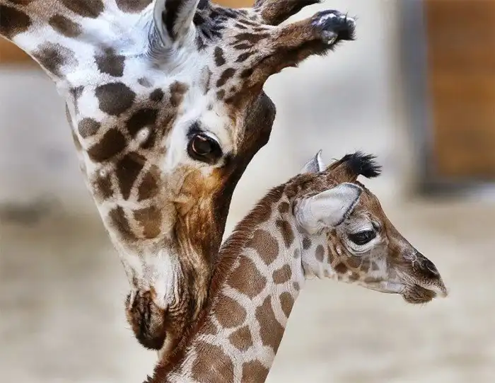 9. Трехдневный ребенок-жираф Кимара со своей матерью Катариной в зоопарке Opel в Кронберге под Франкфуртом, Германия, 3 января 2017 года