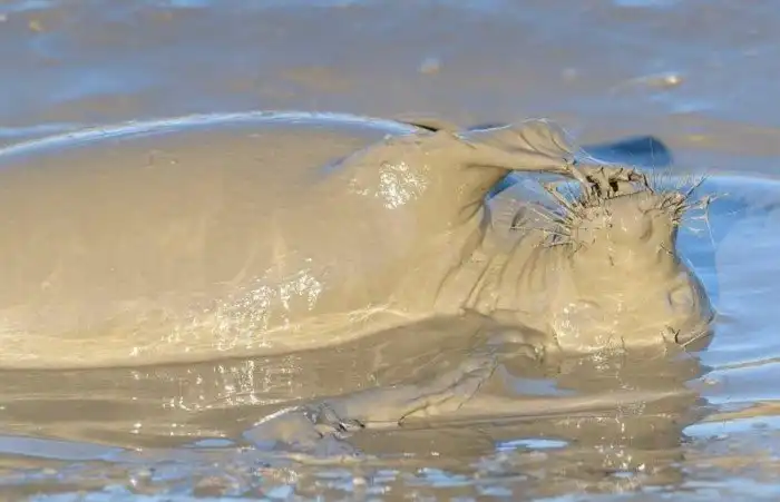 О пользе грязевых ванн известно не только людям, но и животным. Вот и тюлень в национальном заповеднике Донна Нук, Линкольншир, Великобритания, обнаружив лужу с морской грязью, принялся за процедуры. Счастливую самку, будто облитую шоколадом с мордочки до ласт, сфотографировал 54-летний Найджел Кокс.