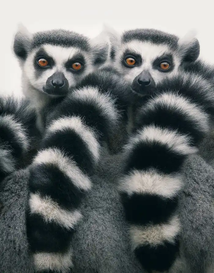 В еготрогательной серии снимков (и книге), под удивительно точным названием «Под угрозой исчезновения», эти невероятные создания сталкиваются с нами взглядами. Эти фотографии сильно отличаются от обычных изображений животных, где они запечатлены в природной среде. В отличие от других авторов, Флач снимает их на совершенно неожиданном фоне, полностью отрывая от обычной среды обитания.