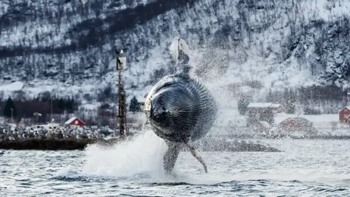 Выпрыгивающий из воды большой горбатый кит. Снимок получился совершенно случайно, но Эспен Бергерсен говорит, что был этому страшно рад.