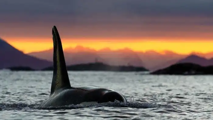 Фотограф поймал момент погони косатки за добычей - жирной сельдью. Кстати, ученые обнаружили, что косатки часто используют свой хвост, чтобы шлепать и оглушать рыбу, прежде чем охотиться на нее.