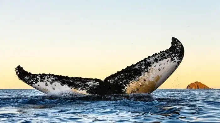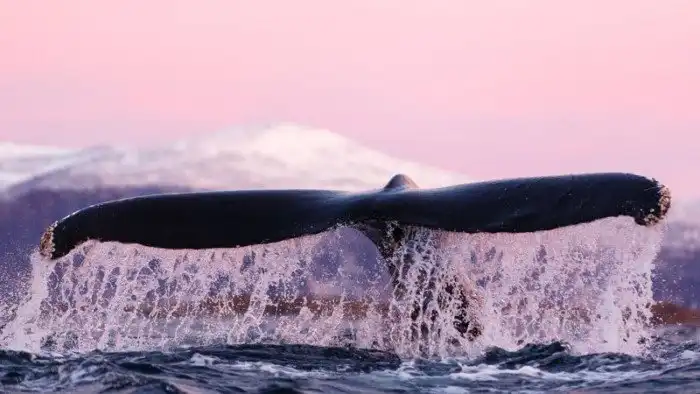 Когда киты шлепают хвостами, шум разносится на многие километры. Считается, что удары хвостом используются как способ связи или для оглушения добычи.