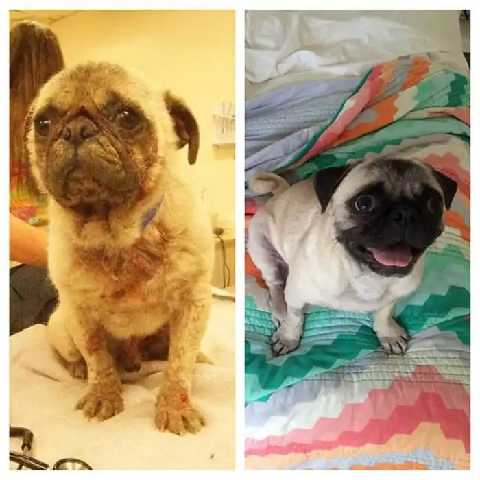 Эти фото наглядно показывают что любовь, уход и внимание творят чудеса. После того, как забрали этих ребят из приюта для животных, они превратились в домашних любимцев, у которых есть постоянное место жительства, игрушки, вкусный корм, а главное - любящий хозяин.