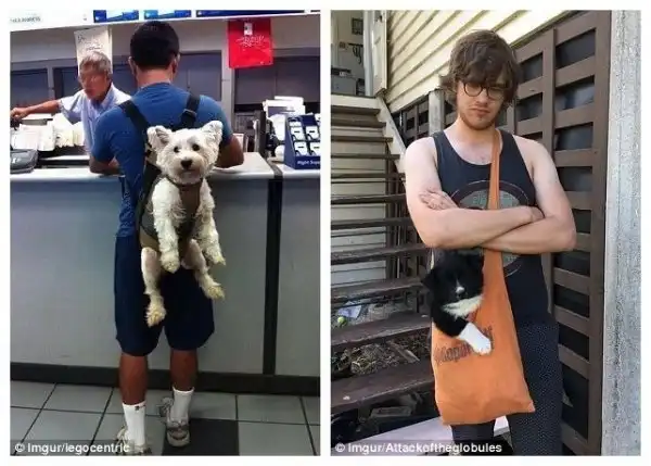 Эти мощные лапищи предназначены не для ходьбы! Сегодня часто можно увидеть, как домашних животных носят в сумках и рюкзаках, чтобы дитятко не испачкалось. И чтобы можно было спокойно перемещаться с ним в общественном транспорте, например. Но выглядит это забавно, не правда ли?
