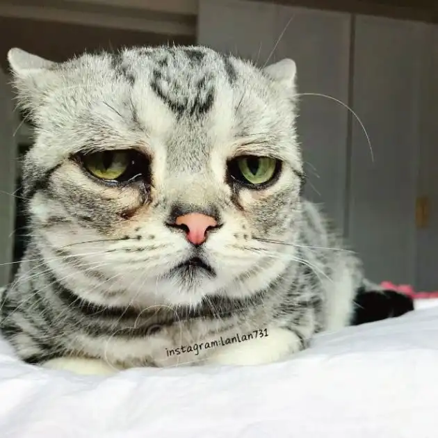 Кошка по кличке Луху живет в Пекине вместе со своими сородичами и хозяйкой Мэгги Лю. И, несмотря на то, что все котята родились от одних и тех же родителей, Луху единственная, кто выглядит так грустно. От рождения она имеет прискорбное выражение. Зато животное приносит много счастья своей семье, а также подписчикам в Инстаграм.