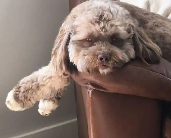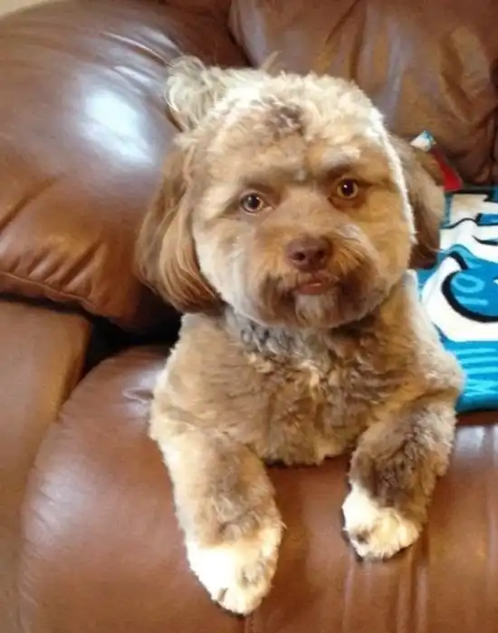 Это пес породы шипу по кличке Йоги. Сейчас ему один годик. Больше всего он привлек внимание своим необыкновенным внешним видом: мордочка Йоги имеет очень большое сходство с человеческим лицом.