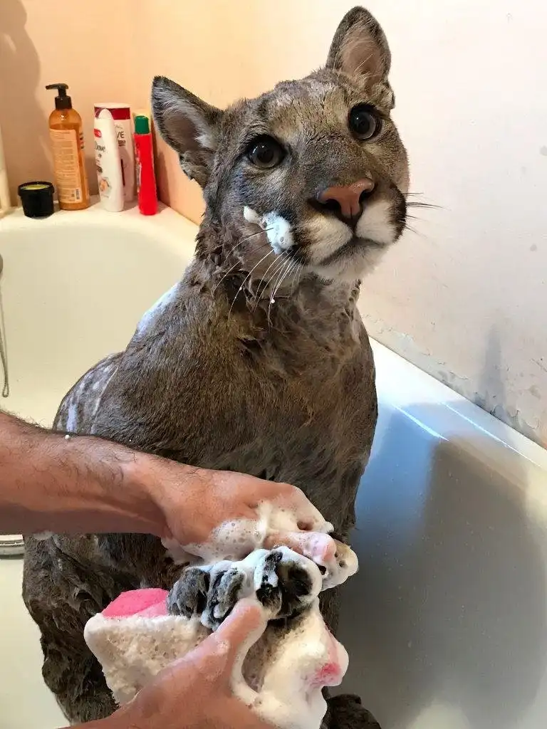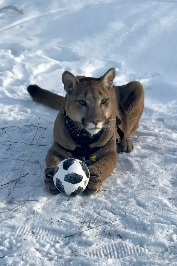 Мария и Александр Дмитриев из Пензы влюбились в "котенка" Месси так сильно, что они выкупили его из местного зоопарка в Пензе. Тогда это был детеныш пумы, причем со слабым здоровьем. Прошло уже 2 года, своего питомца они выходили, и без ума от него. Животное отвечает взаимностью, и даже научилось некоторым трюкам (видео под катом). Прихожую в квартире переделали в вольер. Кстати, вес Месси - 90 кг, что в десяток раз больше обычной кошки. Назревает вопрос - проявит ли животное когда-нибудь дикий нрав?