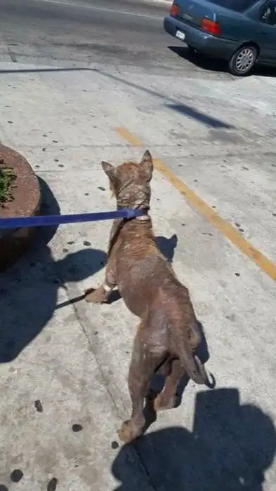 Глядя на эту здоровую и красивую собаку, сложно представить, что не так давно она была близка к гибели. Помогла ей Карла Солис, обнаружившая пса под своей машиной. Собака страдала кожными заболеваниями, лишилась шерсти и была сильно истощена. Карла решила поставить животное на ноги и пес буквально расцвел на глазах.