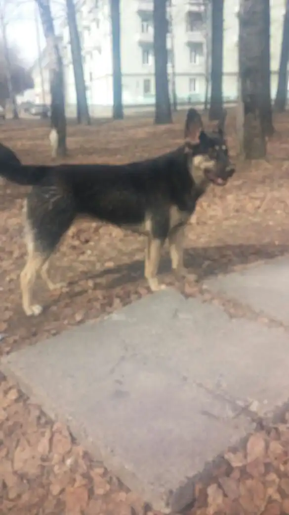 Похожа на овчарку, лает очень громко.