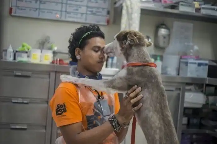 Пес, не смотря на все неприятности в своей жизни, остался дружелюбным и контактным.