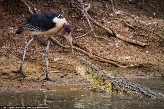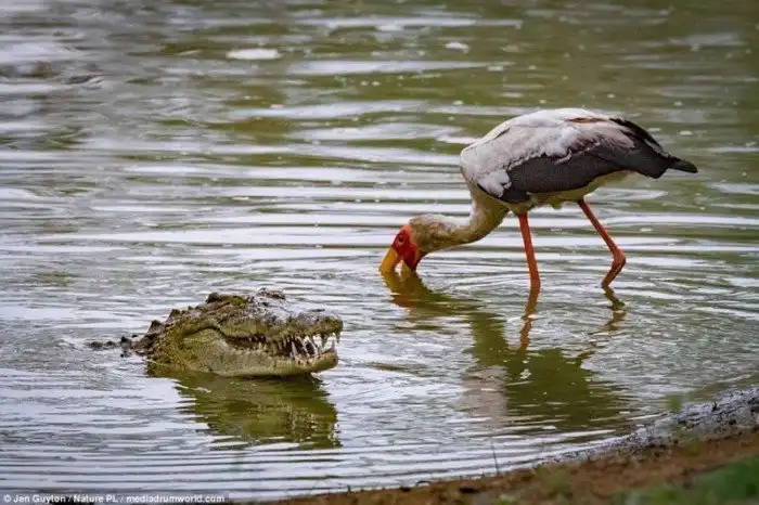 А эти фотографии охоты крокодила на птиц в национальном парке Горонгоза (Мозамбик) сделала фотограф Джен Гайтон