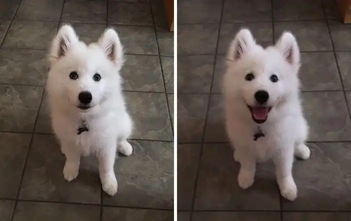 Все фотографии объединяет одно: каждое животное сфотографировали до того, как его назвали "хорошим мальчиком" (или "девочкой) — и после. Разница, как говорится, налицо. Точнее наморду.