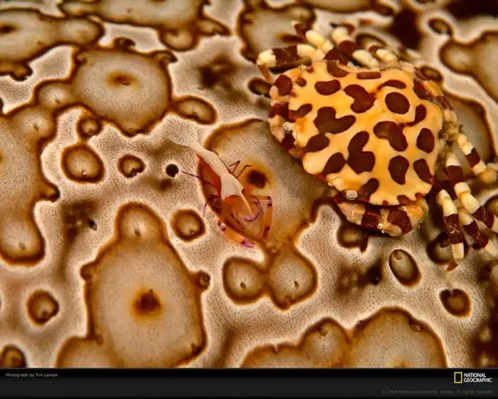 Это один из наиболее хорошо замаскированных жителей океана. Нужно приложить немало усилий, чтобы увидеть это крошечное существо размером 2.5 см среди густых зарослей кораллов. (Фото David Doubilet):