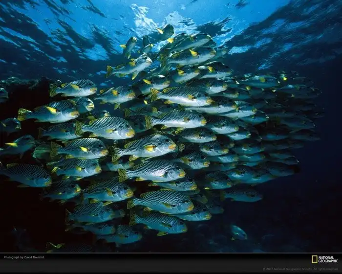 Косяки этих рыб двигаются в океане как единое целое, чтобы защититься от хищников. (Фото David Doubilet):