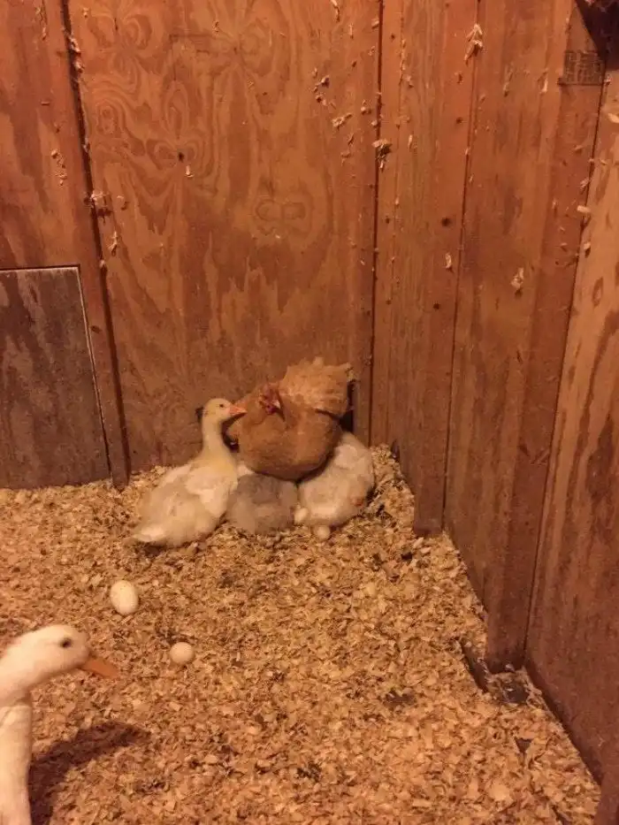 11. «Мой друг дал курице три гусиных яйца, чтобы та высидела их. Птенцы уже вылупились, а она всё так же о них заботится»