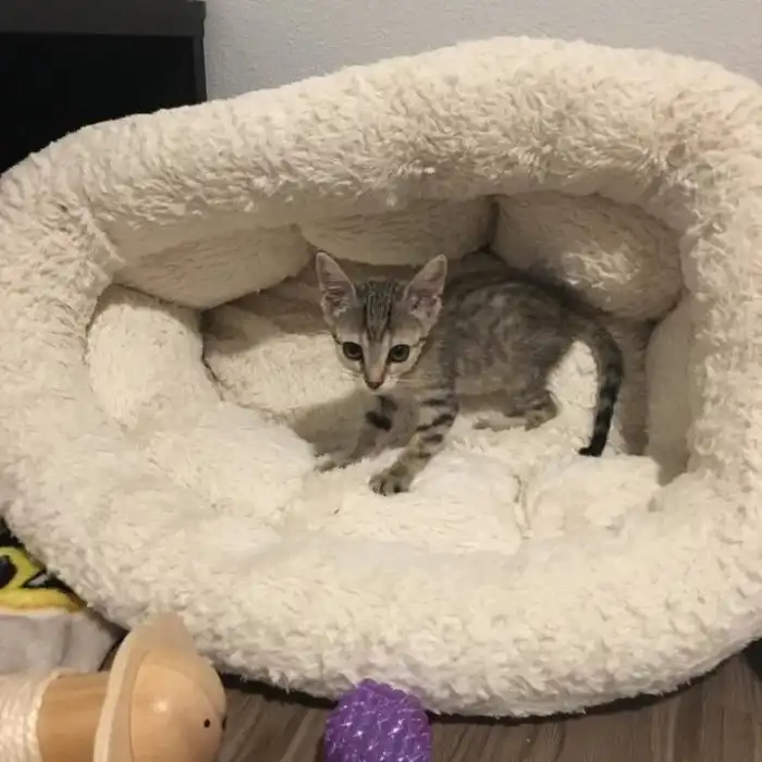 В августе 2017 года в приют для кошек принесли новичков. В большой коробке вместе со взрослым котом и кошкой находилось 11 очень маленьких котят. Все котята были худыми и плохо выглядели.