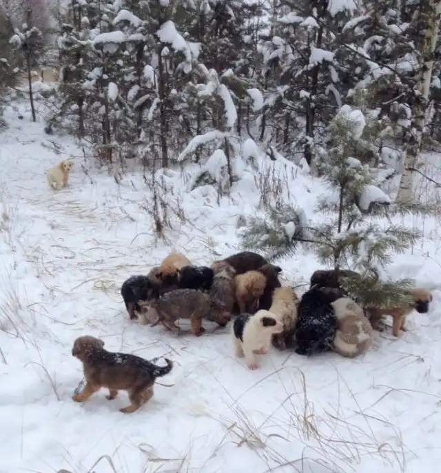 Житель села Агро-Пустынь обнаружил 20! брошенных щенков, которые замерзали от холода и голода. Всех щенков охраняла дворняжка, которой и самой не было даже и года отроду. Стоит отметить, что щенки были также разного возраста - от 1 до 1,5 месяцев.