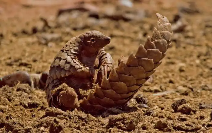 К сожалению, эта животинка на грани вымирания. Но весь прикол в том, что из обычных хищников с ним не может справится почти никто. Догнать панголина это очень просто (он передвигается на двух лапах 5 км в час максимум), но большая проблема его вскрыть, ведь это камнеобразный колобок. Только леопард или лев могут похвастаться навыками по вскрытию панголинов. Но даже тут для котиков припасён прикол. Если панголина удаётся вскрыть, то он выпускает в кису вонючую смесь, что сразу же отгоняет врага.