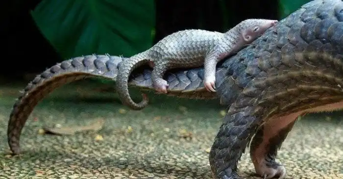 Теперь рассмотрим их размножение. Живут эти ребята по одиночке, поэтому спариваются раз в год. Кстати, из-за панциря зверям приходится использовать миссионерскую позу. После интимных занятий панголин-девушка ходит брюхатой 120-150 дней. Африканские виды приносят одного детёныша, азиатские — от одного до трех (как и все азиаты). Новорождённые личинусы рождаются хорошо развитыми, но чешуйки у них мягкие и затвердевают только через несколько дней. Детеныш кушает сам уже через месяц.