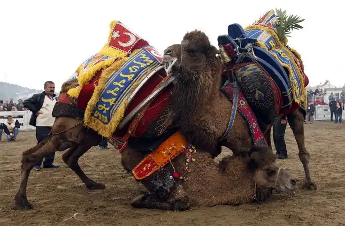 К двум годам молодые горячие бактрианши уже во всю готовы плодиться, а мальчики же тупят до 5 лет. Во время поры любви бактрианов сажают на привязь, иначе крови, кишок и смерти слабых самцов не избежать. В драках милые верблюды ведут себя довольно агрессивно: прижимают соперника шеей к земле, кусают за ноги и горло, пинаются. Немного напоминает школьную потасовку, но выглядит немного лучше. Битвы бактрианов даже проводятся как развлечение. Интересно что малочисленные дикие верблюды ведут себя как настоящие разбойники: в период гона бьют домашних самцов и уводят с собой самок в степи. Оно и понятно, женщинам не нравятся домашние мальчики!