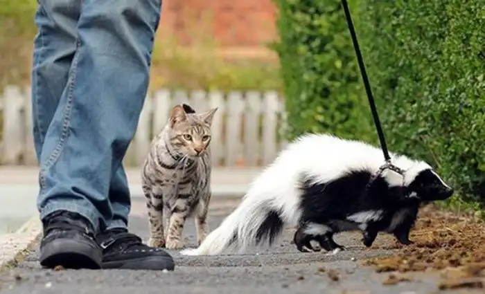 Вот такие вот у Медоеда родственнички в Америке! Стоит отметить, что после операционного вмешательства по удалению пахучих желез данные зверьки неплохо приручаются и держатся американцами в качестве домашних животных. Вымирать также не собираются, так что дела у зверей в порядке.