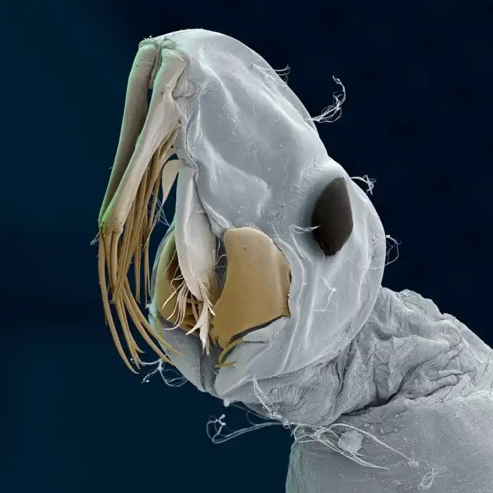 Личинка москита. Любит тропики и хорошее питание. В отличие от комаров, личинки москитов развиваются во влажной почве, а не в воде.