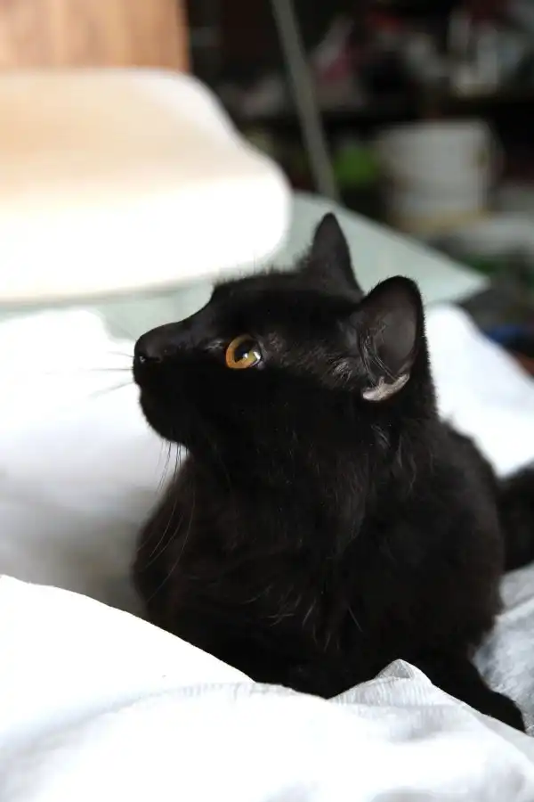 Кот Олег, черный полудлинношерстный, возраст примерно два года. Очень приятный в общении, ласковый, умный кот. Домашний, потерял свою хозяйку. Питается готовыми кормами, пользуется лотком, кастрирован.