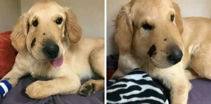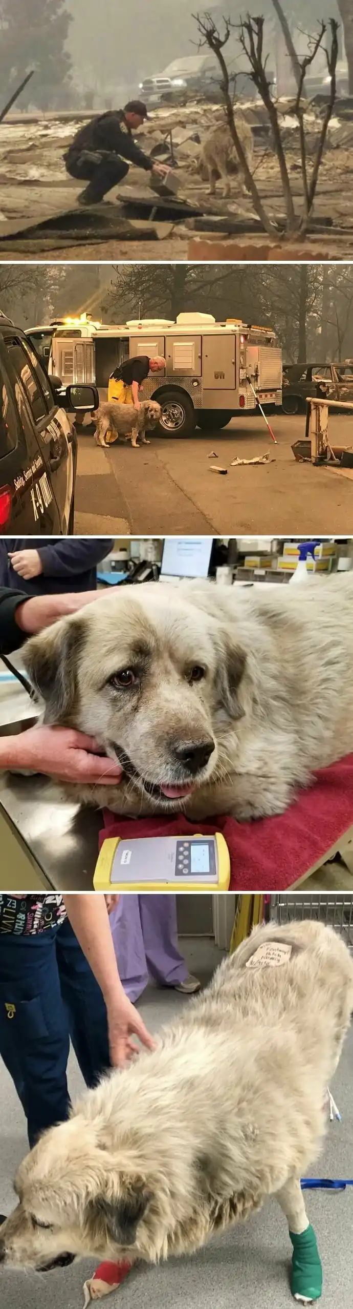 4. Эту потеряшку спасли во время калифорнийских пожаров. У нее сильно обгорели лапы, но она продолжала улыбаться. После недели поисков нашелся ее хозяин! 14 баллов из 10 всем, кто помогал!