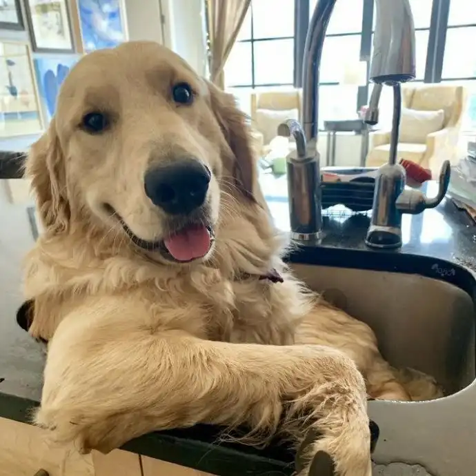20. Это Франклин. Когда он был щенком, его купали в раковине, и теперь он отказывается перебираться в ванну. Считает, что отлично помещается. Хороший мальчик! 13/10