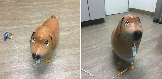 25. Это Барнаби. Надувная собачка, которая работает в больнице для астматиков/аллергиков. Ее очень любят детки, которым нельзя завести настоящую собаку. 14/10