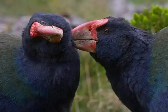С таким делом как секс у такахе беда, ведь они очень медленно размножаются. Да и говорить там, впрочем, не о чем, просто вспомни, как сношаются курицы в деревне твоего деда и представь их ярко окрашенными и толстыми. Со спариванием есть один интересный нюанс: во время акта любви самцы натужно повторяют звук «клауп», а самочки, нежно заглядывая в глаза ухажеру, со сладострастием произносят звуки «та-ка-хе», откуда и происходит название птах. В октябре-ноябре самка откладывает яйки в травяное гнездо. 40% птенчиков погибают, к сожалению. Искусственное разведение почти не венчается успехом. Однако сейчас придумали классную фичу. Высиживать яйца такахе заставляют специфическую породу курочек, что помешаны на высиживании. Эти куры ни при каких условиях не слезают с яйца, даже если рядом происходит полнейший беспредел.