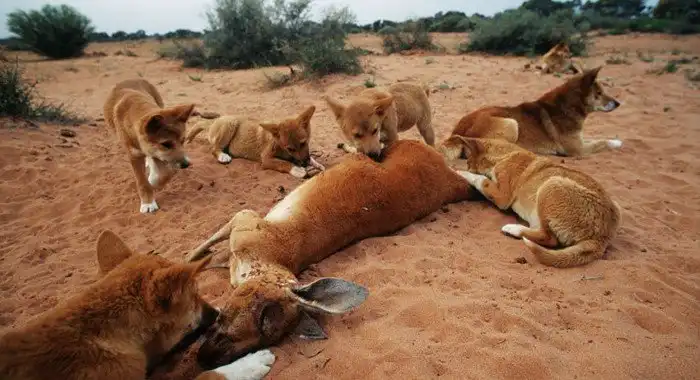 В плане добычи пропитания, динго торжествуют. Будучи плацентарными млекопитающими, они в десятки раз умнее и сообразительнее всей реликтовой сумчатой фауны Австралии. Считается, что именно они оттеснили легендарного сумчатого волка со своих мест обитания. Кенгуру, поссумы, вомбаты – динго с легкостью разносят всех ребят с сумкой. Рептилии, нелетающие птицы. Неизвестно сколько шикарных видов погубили эти собаки за тысячелетия своего кровавого торжества.