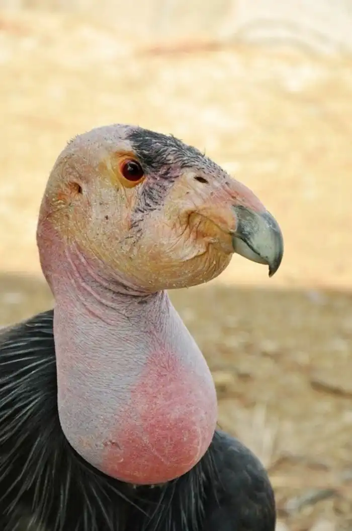 Андский кондор - птица падальщик. Ее голова без перьев, потому что она засовывает голову под кожу мертвого животного и вырывает куски мяса