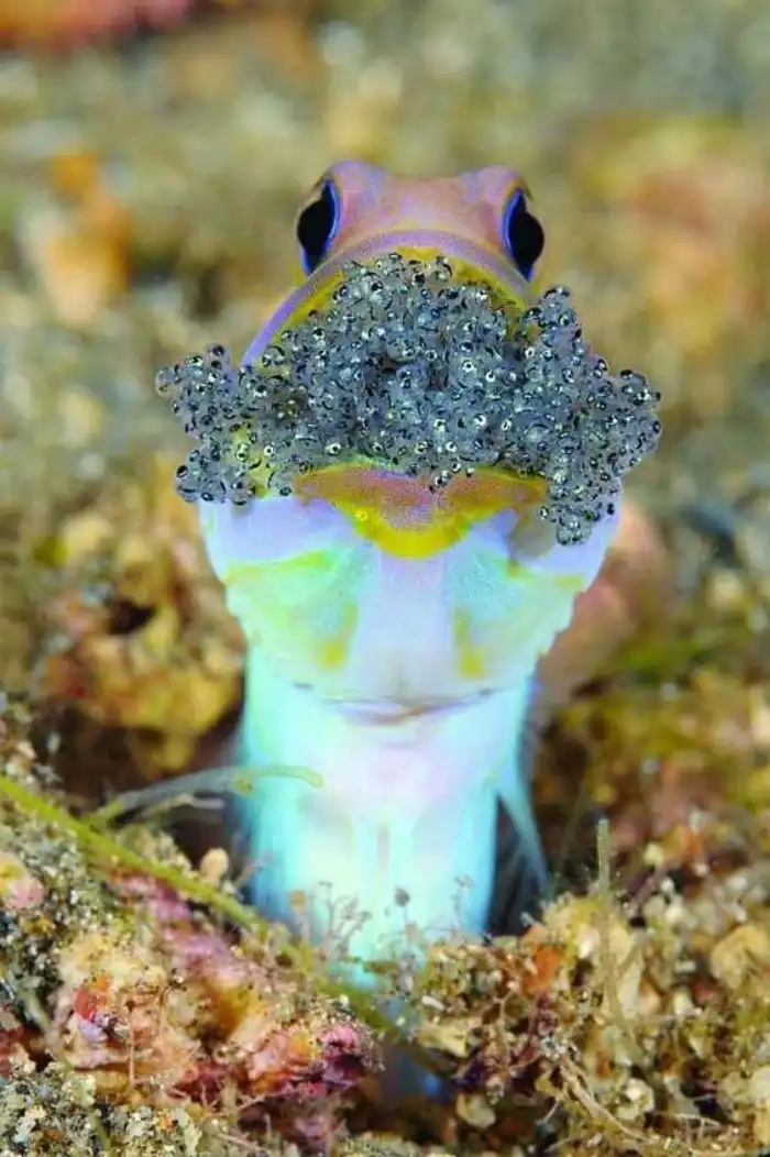 Самцы рыбы Jawfish, превращают свой рот в гнездо, где носит икру, отложенную его партнером