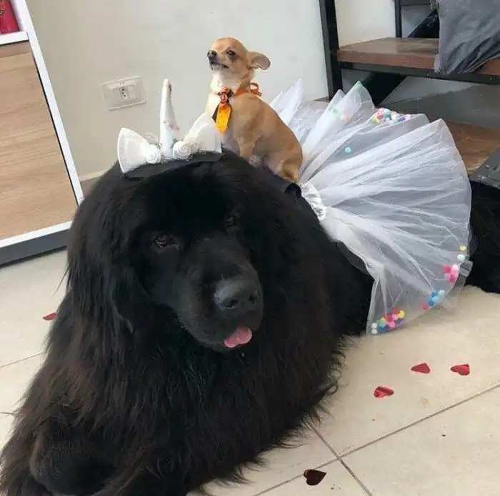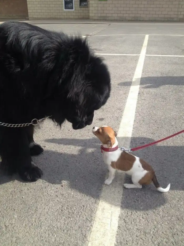 17. «Интересно наблюдать, когда мой ньюфаундленд встречает маленькую собачку»
