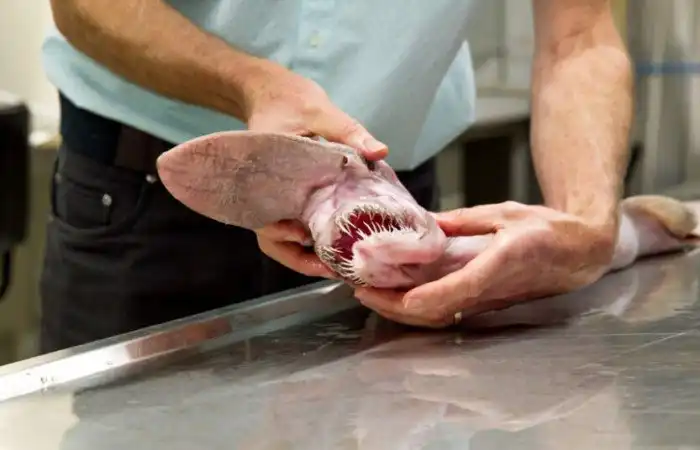 Кстати, несмотря на малоизученность, некоторые «детали» этой рыбки очень ценятся коллекционерами! Например, её челюсть можно продать за баснословные деньги. Из-за этого, а так же из-за отсутствия данных о количестве особей, акула-гоблин занесена в Красную книгу, как редкое и малоизученное животное.