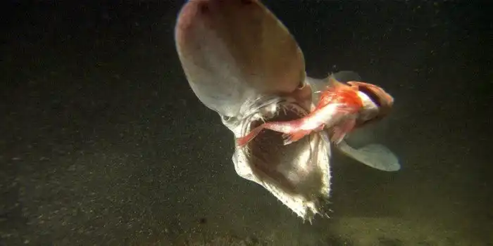 Обитает эта внебрачная дочь нарвала и Голума во всех океанах мира, и при таких раскладах можно было бы подумать, что в следующий раз, когда вы поедите на отдых и будете нежиться на надувном матрасе под лучами палящего солнца, она может раздробить вам позвоночник в кашу своими выдвижными челюстями (от которых я был просто в ужасе, но про них я расскажу позже), но нет, ведь она живёт на глубине от 200 до 1300 метров. Но что-то же она тогда должна есть? И это *барабанная дробь* крабы и рыбки!