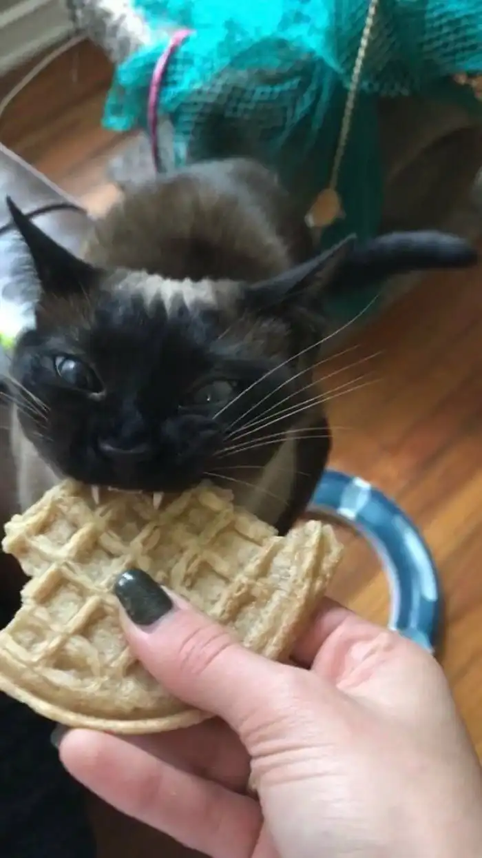 4. «Кошка не даст мне сделать причёску, пока не поиграет в перетягивание резинки и не попытается её съесть»