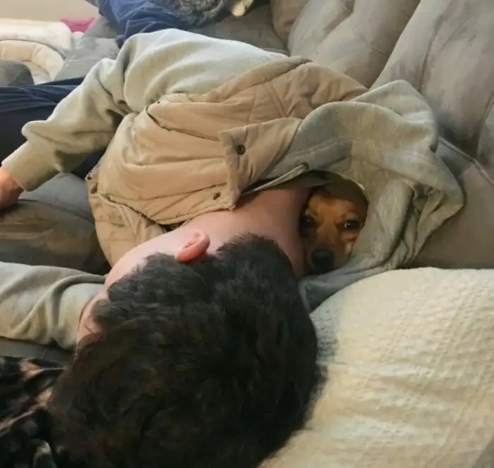 «Наш новый приемыш боится мужчин. Поэтому муж дал ей возможность самой решить, когда подойти. Она легла рядом и положила на него голову, как на подушку»