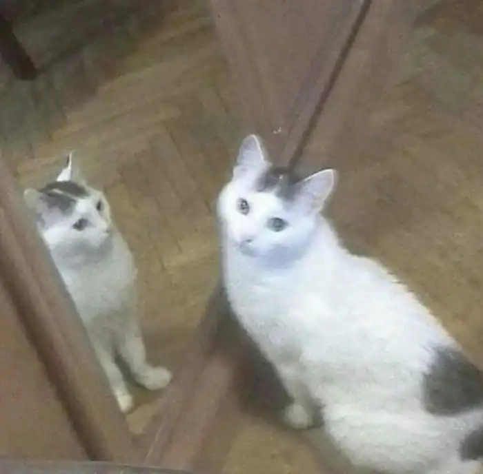 Кошка может сломать всё на свете и даже своё отражение в зеркале