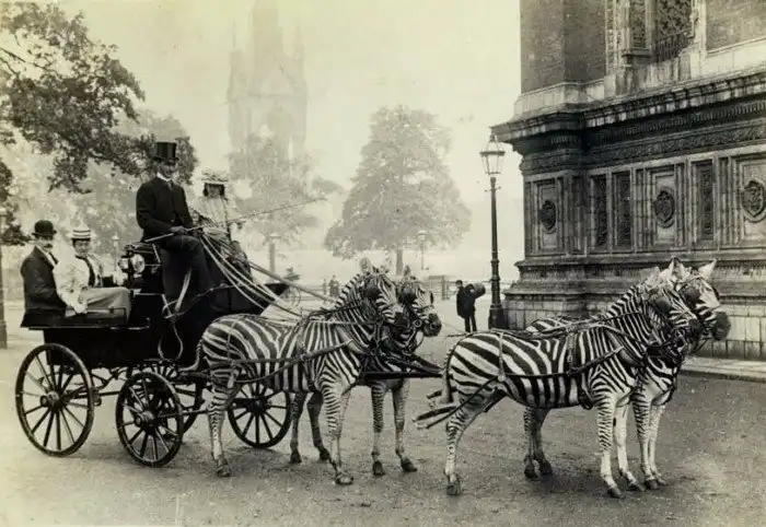 Зебры абсолютно неприручаемы, если вы, конечно, не жидомасон Ротшильд. С очень большим трудом надрессировать зебру можно, но это того не стоит. В свое время, вы наверное слышали, Уолтер Ротшильд был одержим экзотическими животными. Он даже припер к себе в поместье стадо диких африканских зебр, зарядил их в упряжку и зачем то катался по улицам Лондона в повозке, запряженной зебрами.