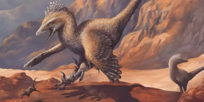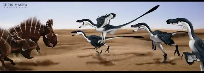 К слову, об индюшонке. Семейство дромеозаврид, к которому относится велосипедный раптор, считают сестринским к птичкам. Конечно, современные петухи не могут утверждать, что велоцираптор был их дохрениллиардным прадедом, но дохрениллиардным прадядюшкой вполне. Ранние представители дромеозаврид и вовсе были бета версией современных пернатых. Но, почуяв что сейчас будет мясо, пошли осваивать нишу мелких и средних хищников.