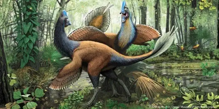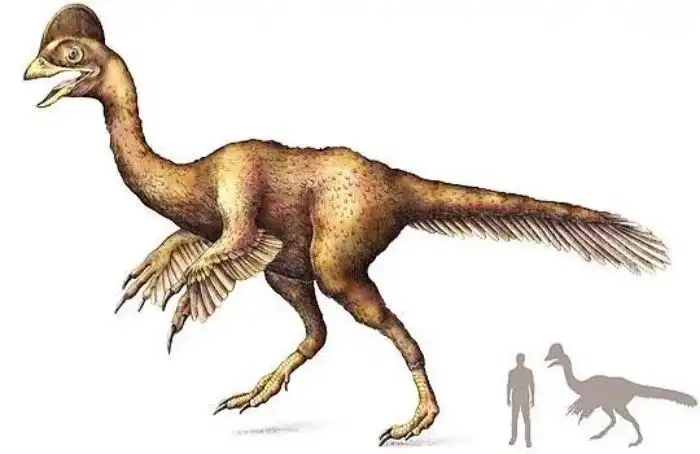 Учёные предполагают, что животина была оснащена большим количеством перьев. Ими был украшен хвост и передние лапки. Служил этот яркий прикид для демонстрации и защиты, чтобы казаться больше и внушительнее. Казалось бы, куда больше? Но, очевидно, 3 метра для мира динозавров не самый видный рост.