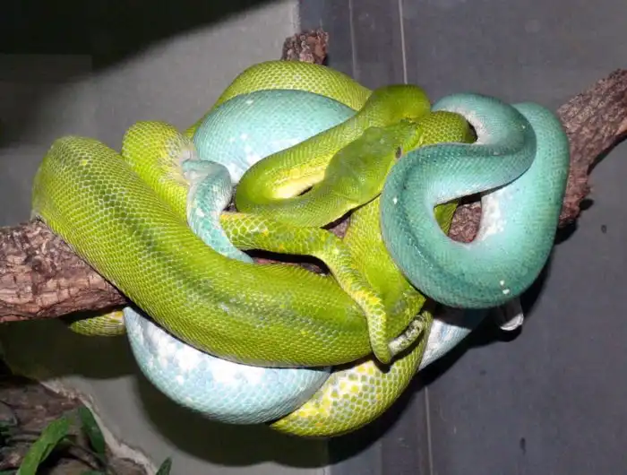 В зависимости от того, где обитает рептилия, окрас может варьироваться от блекло-жёлтого, до ярко-зелёного с различными вкраплениями.