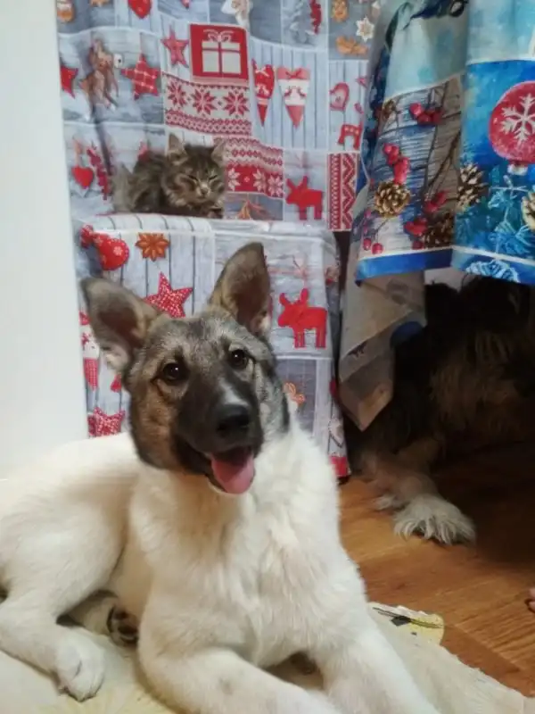 Наша чудесная и опытная передержка воспитывает щенка с любовью и по полной программе. Мирочка уже посещает дрессировочную площадку, где проявляет чудеса сообразительности. Её там ставят в пример остальным питомцам, даже породистым. А в остальном Мира – милый, резвый, любопытный ребенок. Она живет в квартире в компании кошек и взрослых очень воспитанных собак, что очень хорошо сказывается и на её воспитании: ведь собаки учатся друг у друга и у старших. Приучают девочку и к порядку в туалетных делах: стул - только на улице уже, а по-маленькому - и 3 разового выгула пока не хватает, но дома приучена писить на пеленочку.