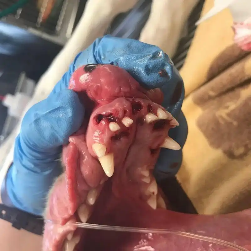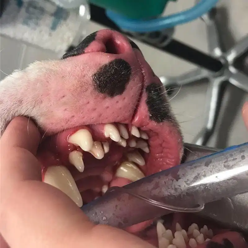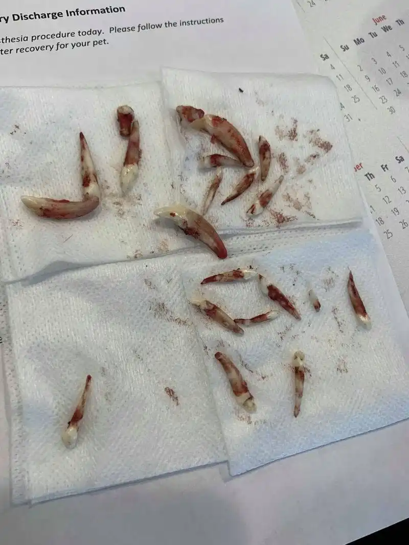 Собаке оставили 49 зубов, остальные 21 удалили. Пса посадили на мягкую диету, а с хозяйки содрали 770 баксов за оказанные медицинские услуги.