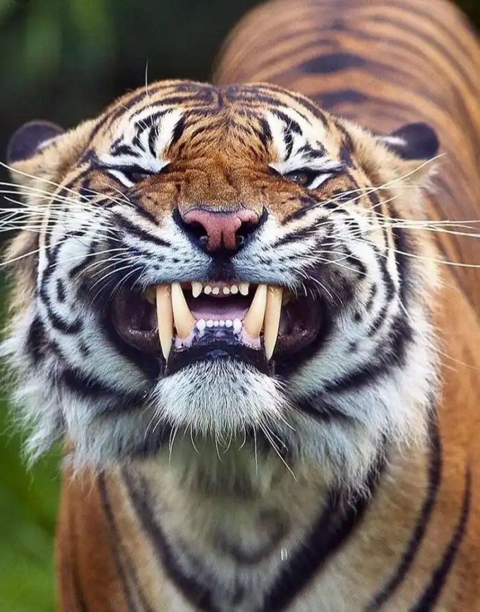 12.Тигр демонстрирует, что с зубами у него точно всё в порядке