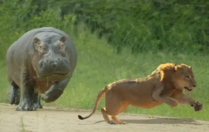 Этот обитатель африканских болот и озёр только на первый взгляд кажется флегматичным добрым жирдяем. На самом деле это свирепый зверь, отчаянно защищающий свою жизнь, потомство и территорию. Особенно бегемоты не любят чужаков на своей территории. Не раз фиксировались случаи, когда гиппопотамы умерщвляли зебр, антилоп и домашний скот, покусившихся на их любимое болотце. Не побоится бегемот и льва с целым прайдом.